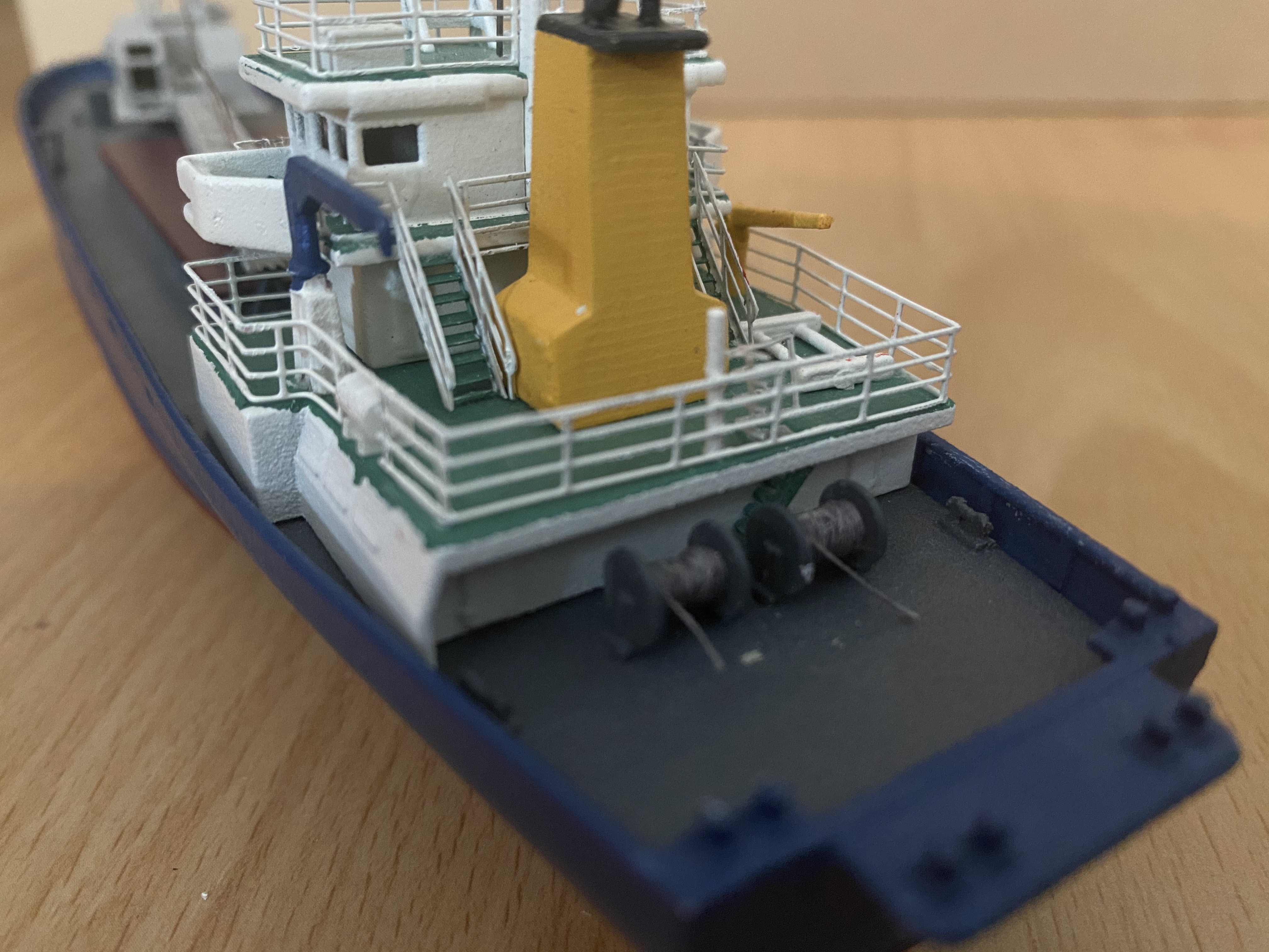 The seven Powhatan Class tugs were built and operated by the Military Sealift Command of the US navy since the late 1970‘ies for all kinds of fleet ocean tug duties. In 2014, four were still active with the US navy. Each vessel are used to tow vessels, barges, and gun exercise targets, and they are used for salvage and rescue operations. With their twin diesel engines, they have a bollard pull of approximately 54 tons. Additional equipment includes a ten ton crane, a dinghy and firefighting equipment.