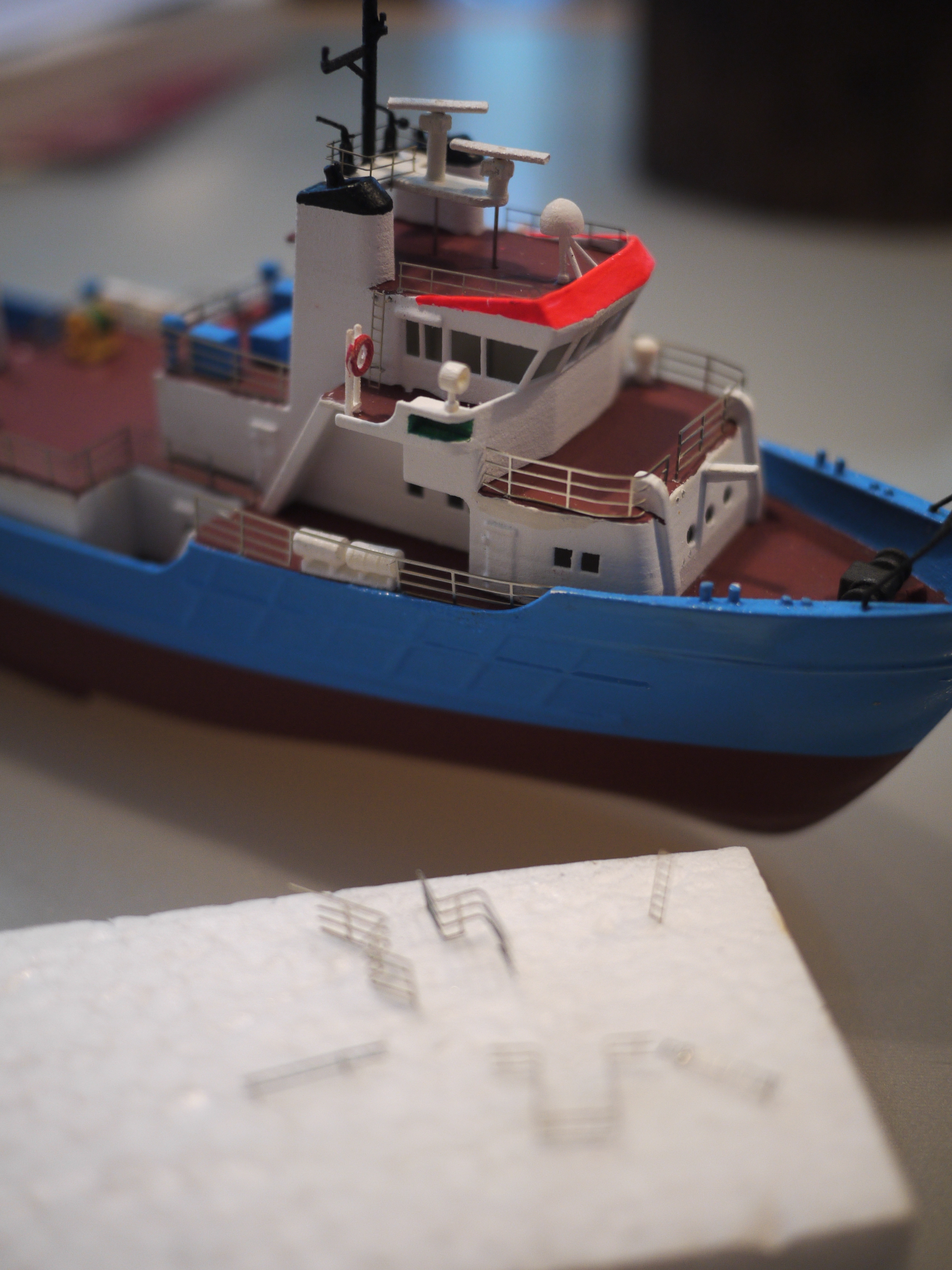 The "Emilka" was the prototype of a series of small tug boats. Today, she is still in use in Gdansk Harbor, and she has several derived military sister ships that were built after this initial design, all with slight improvements (M-12, M-21, M-22 and M-35) and one civilian sister ship that is still in use ("Nogat", originally M-45, also sightly varying from the original design). One further vessel (M-36) saw its use in the Polish coast guard for a while. The model of the Navy tug M22 is available through Micro Boat Hobby, too. The vessel was set up to carry seven passengers or up to 2.5 tons of cargo. The derived versions later make no more use of the "cage" that the original boat was equipped with.