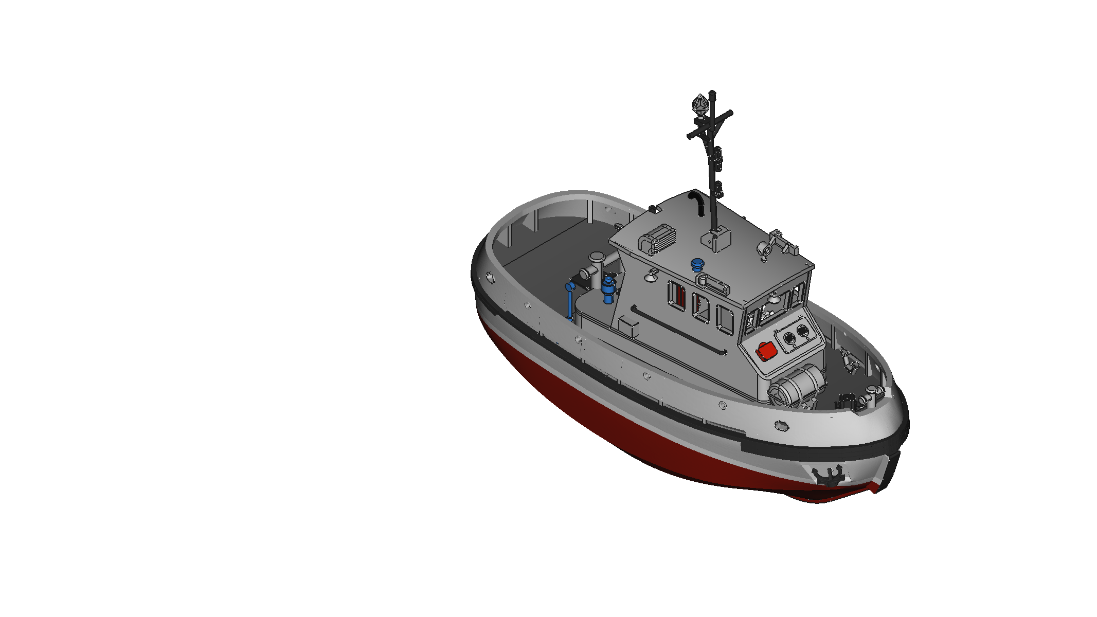 The "M22" is one of several small tug boats employed by the Polish Navy to support harbor and mooring activities, such as the quayside positioning of larger vessels when mooring. The M22 and its sister units M12, M21 and M35 are built based on the design of the mooring tug "Emilka", which still serves as a mooring tug in Gdynia / Gdansk and is also available as a model here. There is also one other civilian sister ship that is still in use ("Nogat", originally M-45). One further vessel (M-36) saw its use in the Polish coast guard for a while. The vessel was set up to carry seven passengers or up to 2.5 tons of cargo. The derived military versions make no more use of the "cage" that the original boat was equipped with, and their state of equipment and painting has varied over the years.
